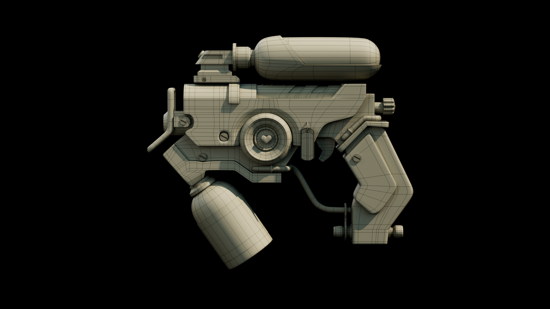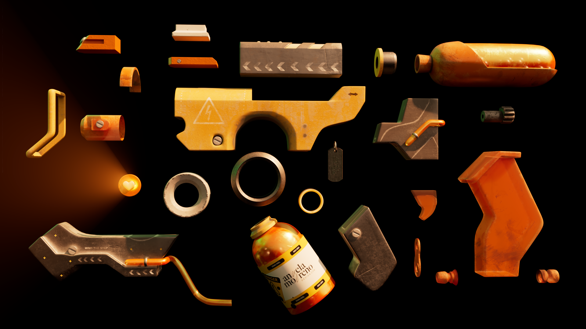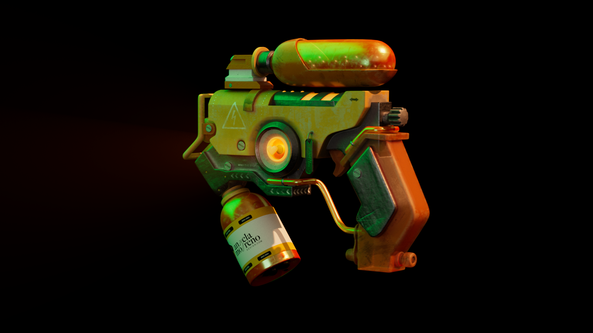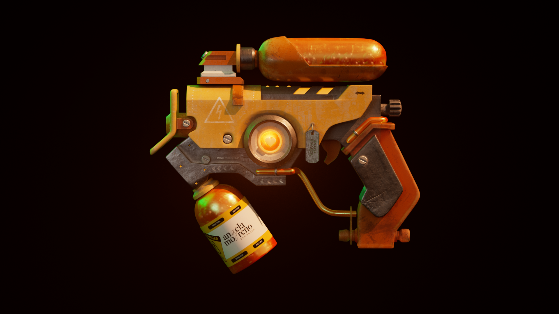 I have modeled a weapon that, in addition to accurately simulating the operation of a real weapon, also represents my personal brand. In the model, the elegance and modernity that characterize my personal brand is reflected. The idea arose from combining my two passions, graphic design and the 3D world, and create a prototype in which I saw myself reflected.